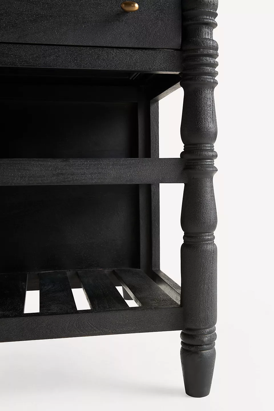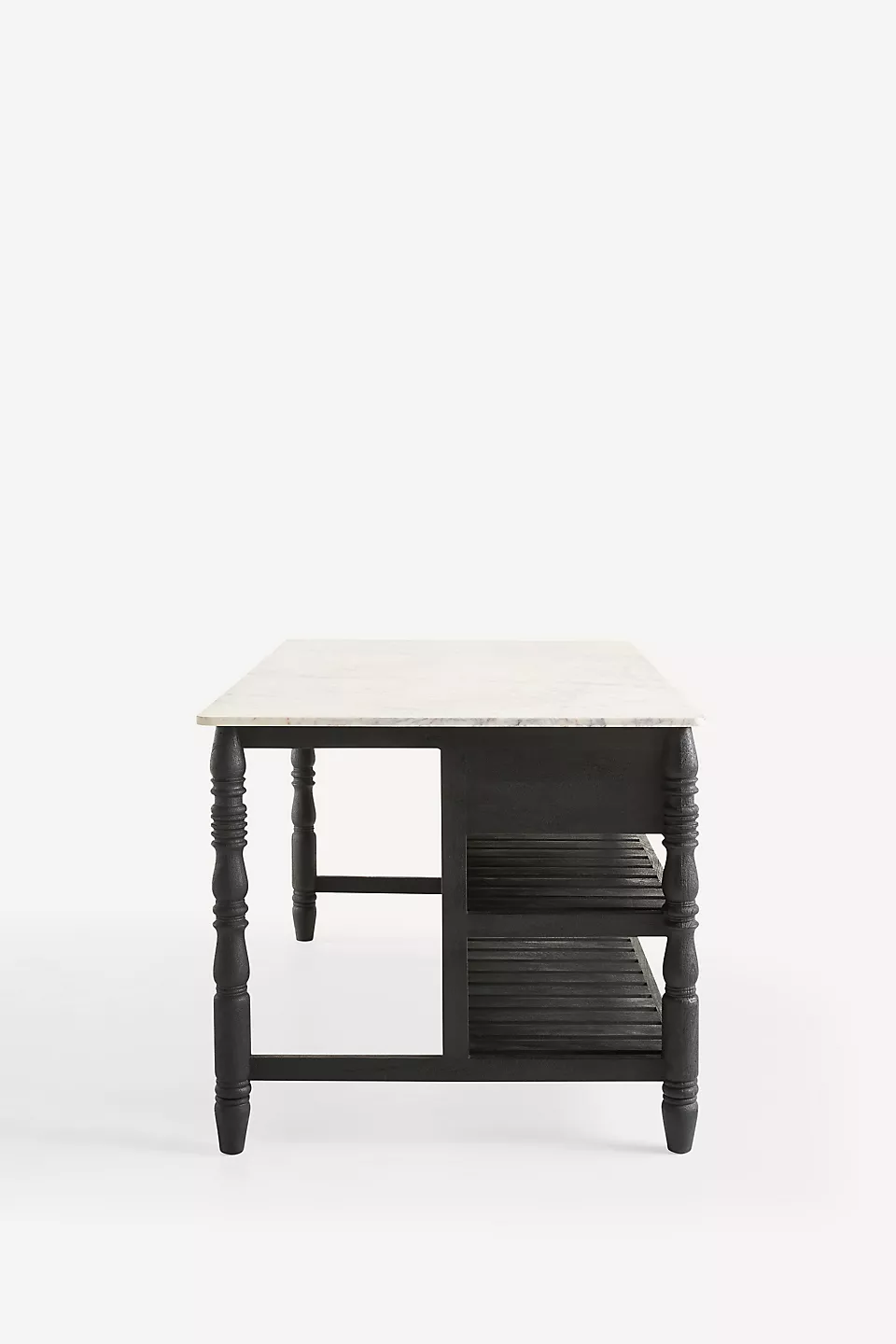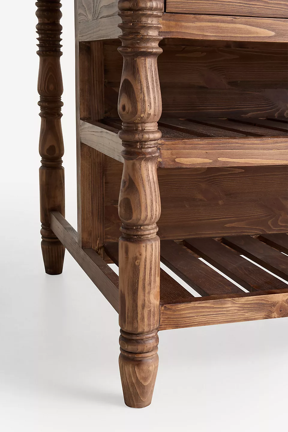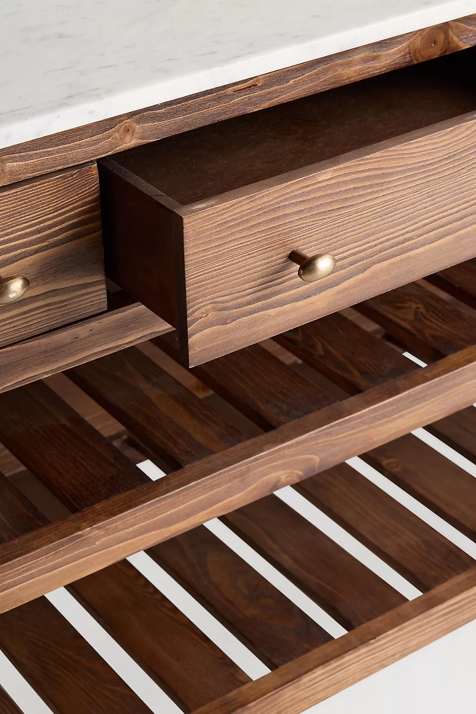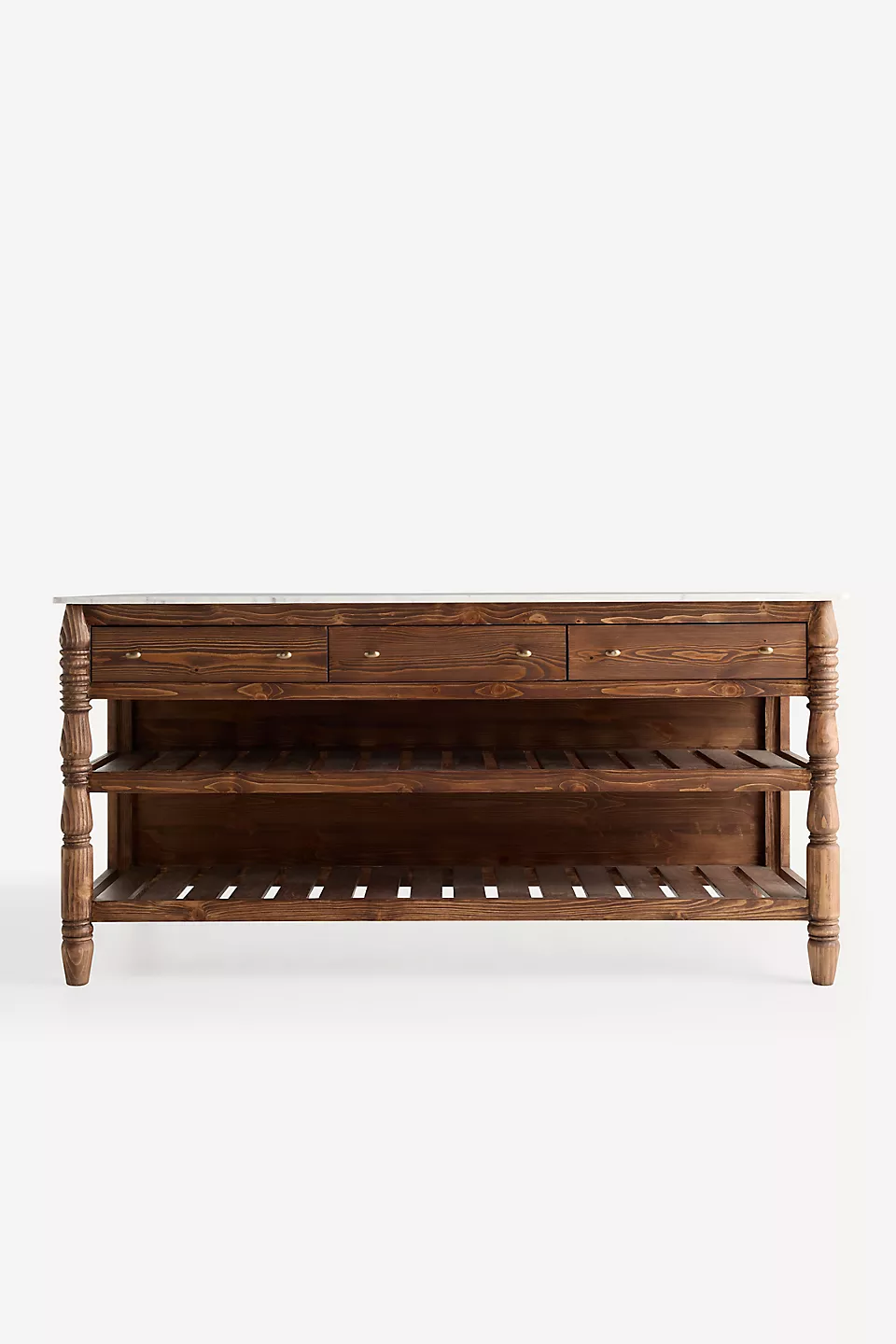 Masif ahşap gövdesi, torna ayak detayları ve geniş raf yapısı sayesinde hem estetik hem de işlevsel bir merkez noktası oluşturur.