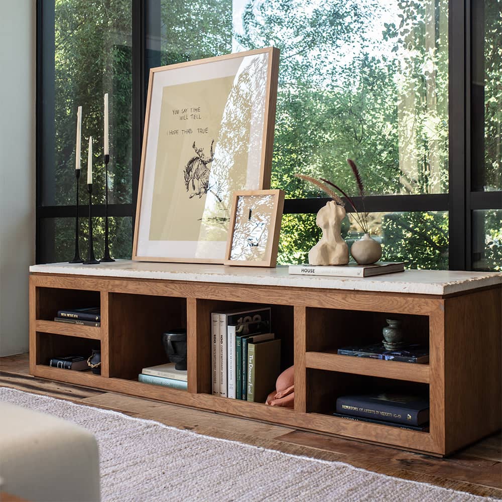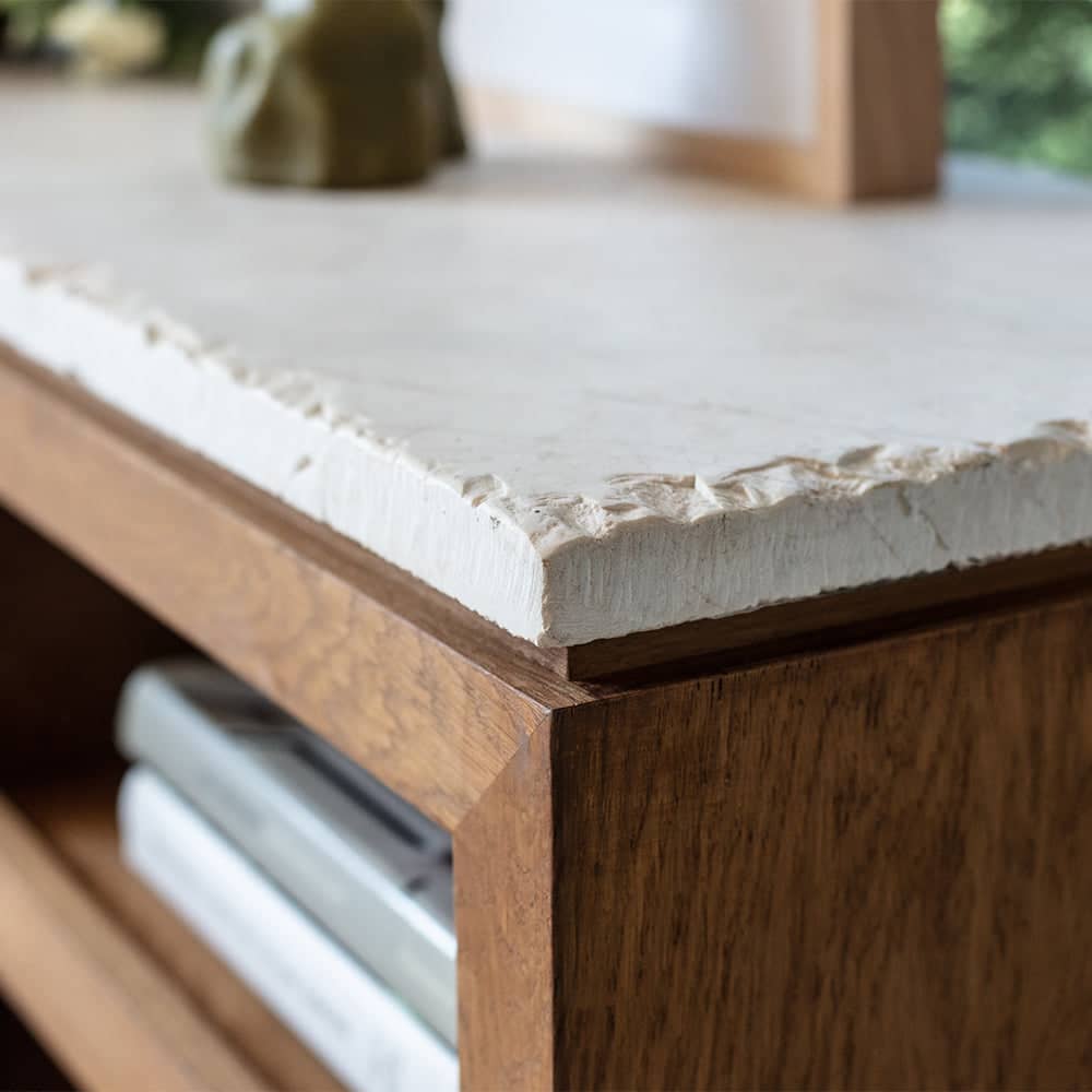 Valdon TV Ünitesi, yalın çizgileri ve doğal masif ahşap yapısıyla modern minimalizmin güçlü bir temsilcisidir. Açık raf bölmeleri, hem depolama hem de sergileme alanı sunarken, doğal ahşap damarları mekâna sıcaklık ve zarif bir dokunuş katar.